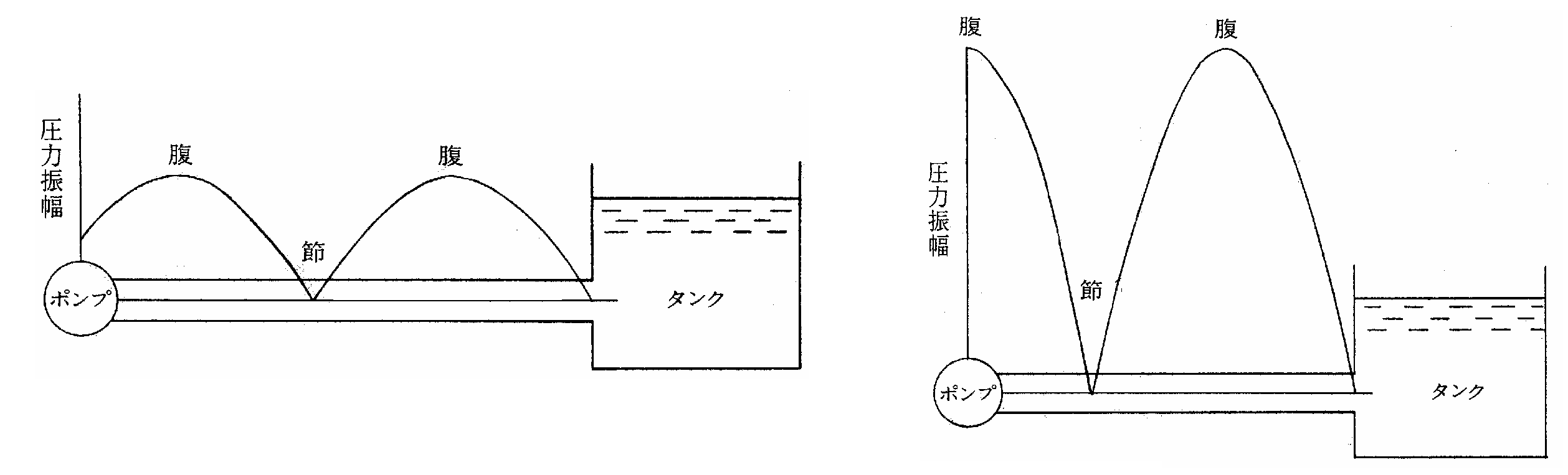 共振現象というのは、ポンプの位置に脈動定在波の「腹」がきた場合に発生し、そのとき管路内の脈動は大きく増幅されます。